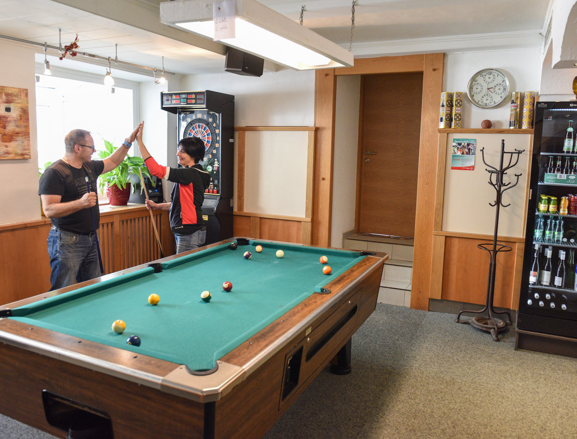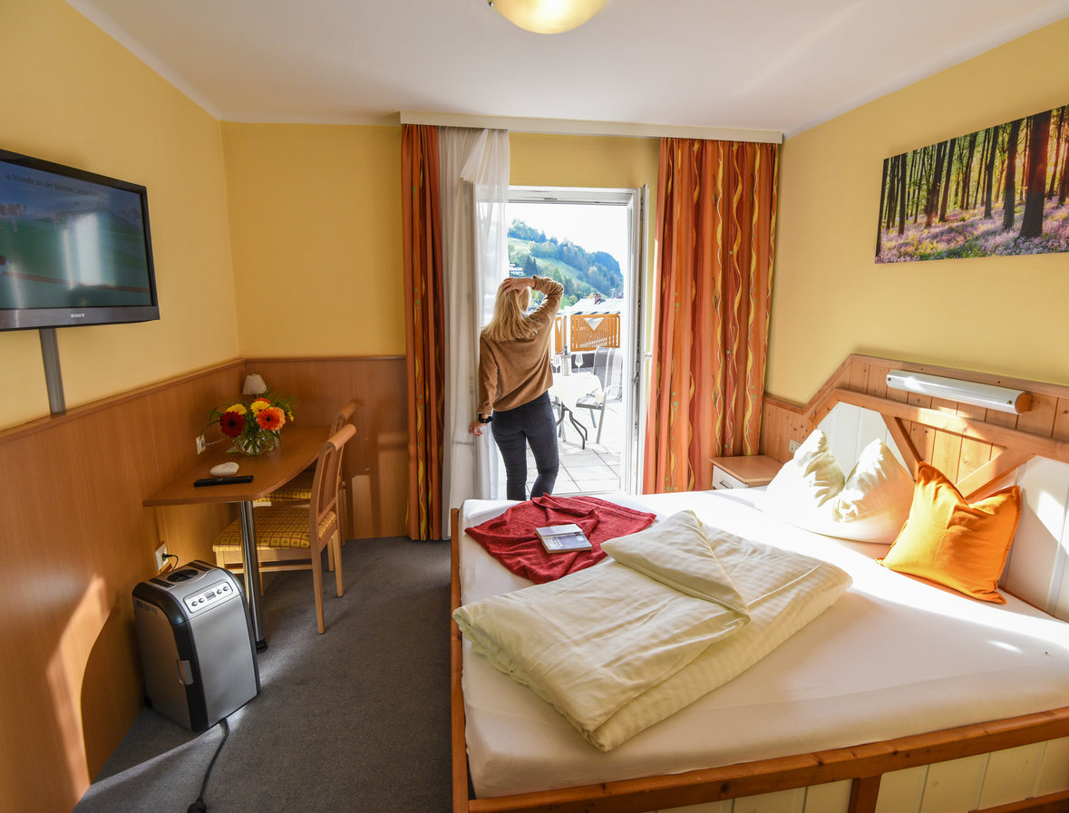 Unser Haus bietet Doppelzimmer (~18m²) bzw. Dreibettzimmer (~23m²) im 2. und 3. Obergeschoss.